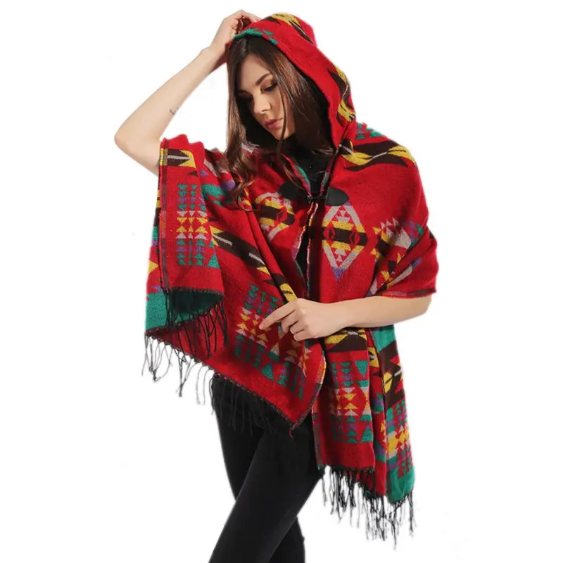 Big Discount Women Fashion Bohemian Cardigan Tassels Cover Up Hooded Cape Cloak Warm Poncho Jacket Coat Shawl Scarf Winter Warm Cloak Coat