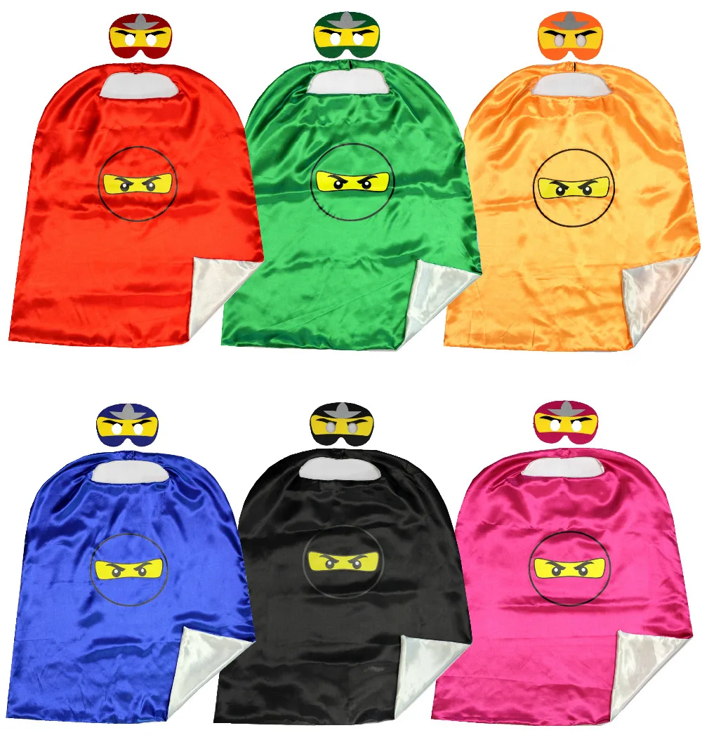 Big SALE 70*80cm 2layer Ninja Capes matching masks Pretend Play Ninja go BirthdayParty Favor Inspired Dress Up Capes + Masks