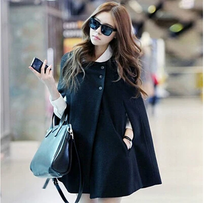 Cheap Casual Womens Cape Black Batwing Poncho Lady Winter Warm Cloak Coat Trench offers