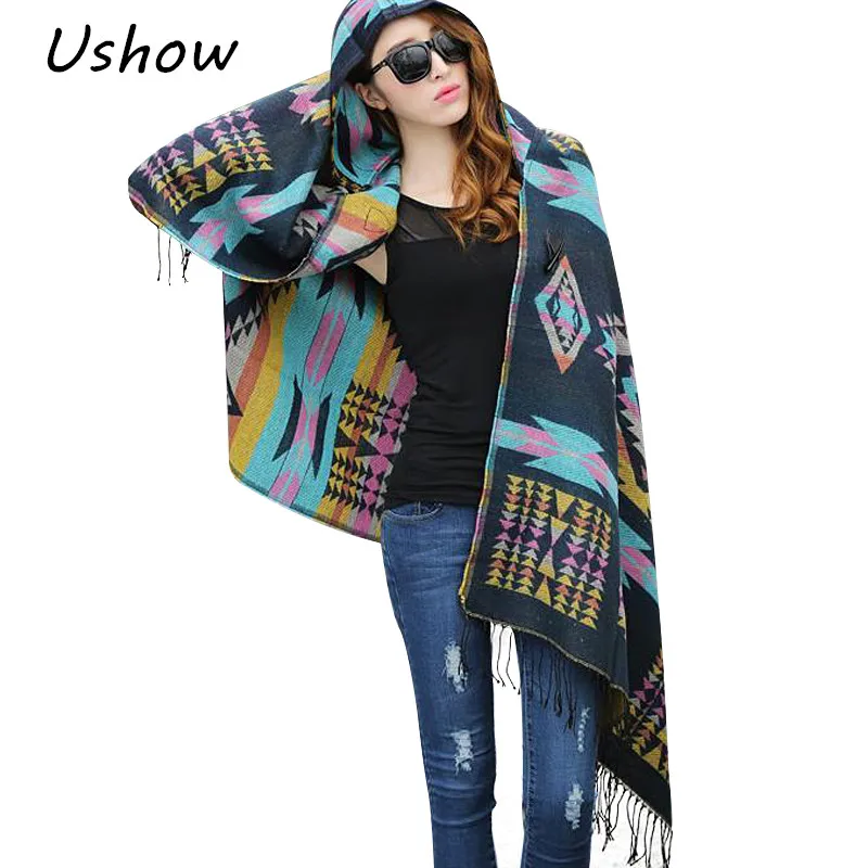 Cheapest 2017 New Fashion Fringe Ethnic Geometric Women Batwing Cape Poncho Knit Top Cardigan Sweater Coat Hip Scarf Shawl Free Shipping
