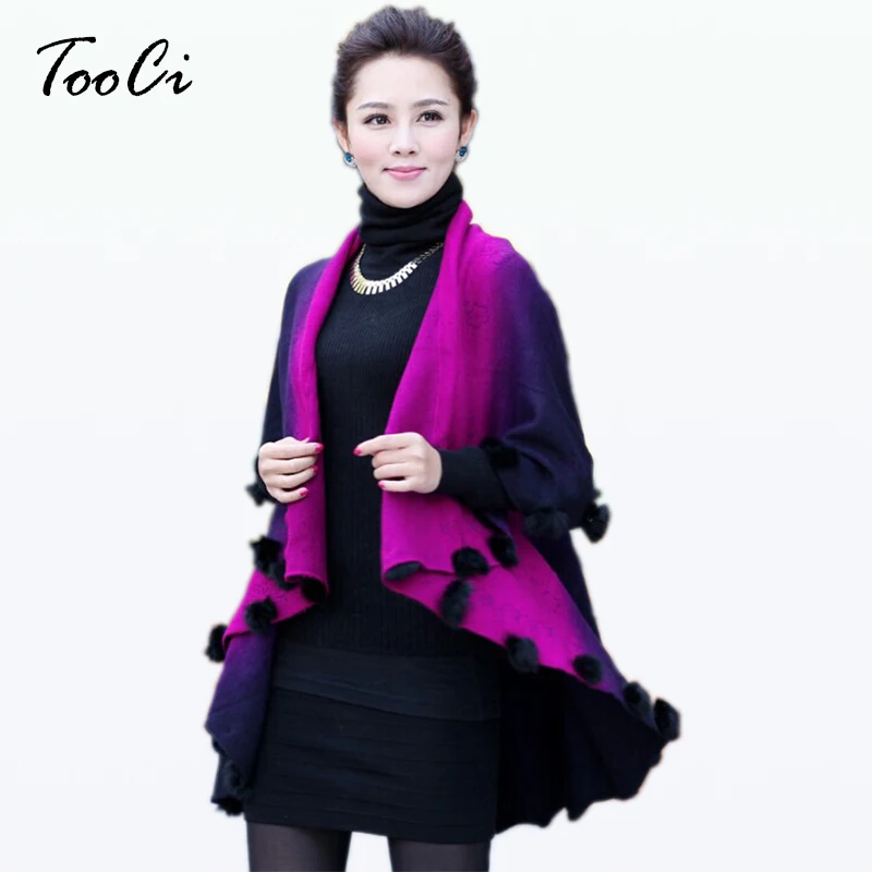 Cheapest Winter Autumn Womens Rabbit Fur Poncho Cape Overcoat Female Wedding Dress Shawl Cape Lady Wool Fur Coat