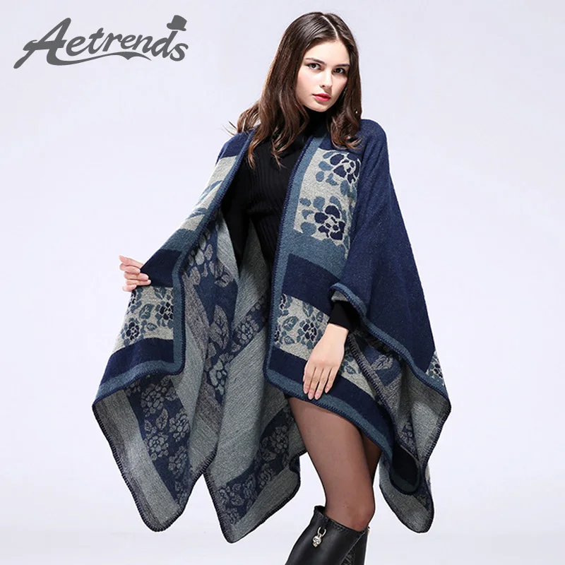 where can My spouse and i buy [AETRENDS] Winter Cashmere Scarf Women Poncho Blanket Cape Shawls Coat Z-3159