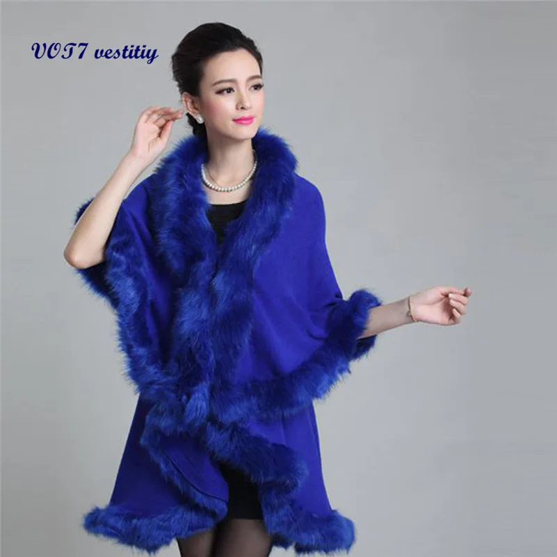 where can My spouse and i buy Ladies Coat VOT7 vestitiy 2017 Spring fashion Women Spring Autumn Faux Fur Collar Poncho Cape Thin Stole Wrap Hoody Coat Jua 1