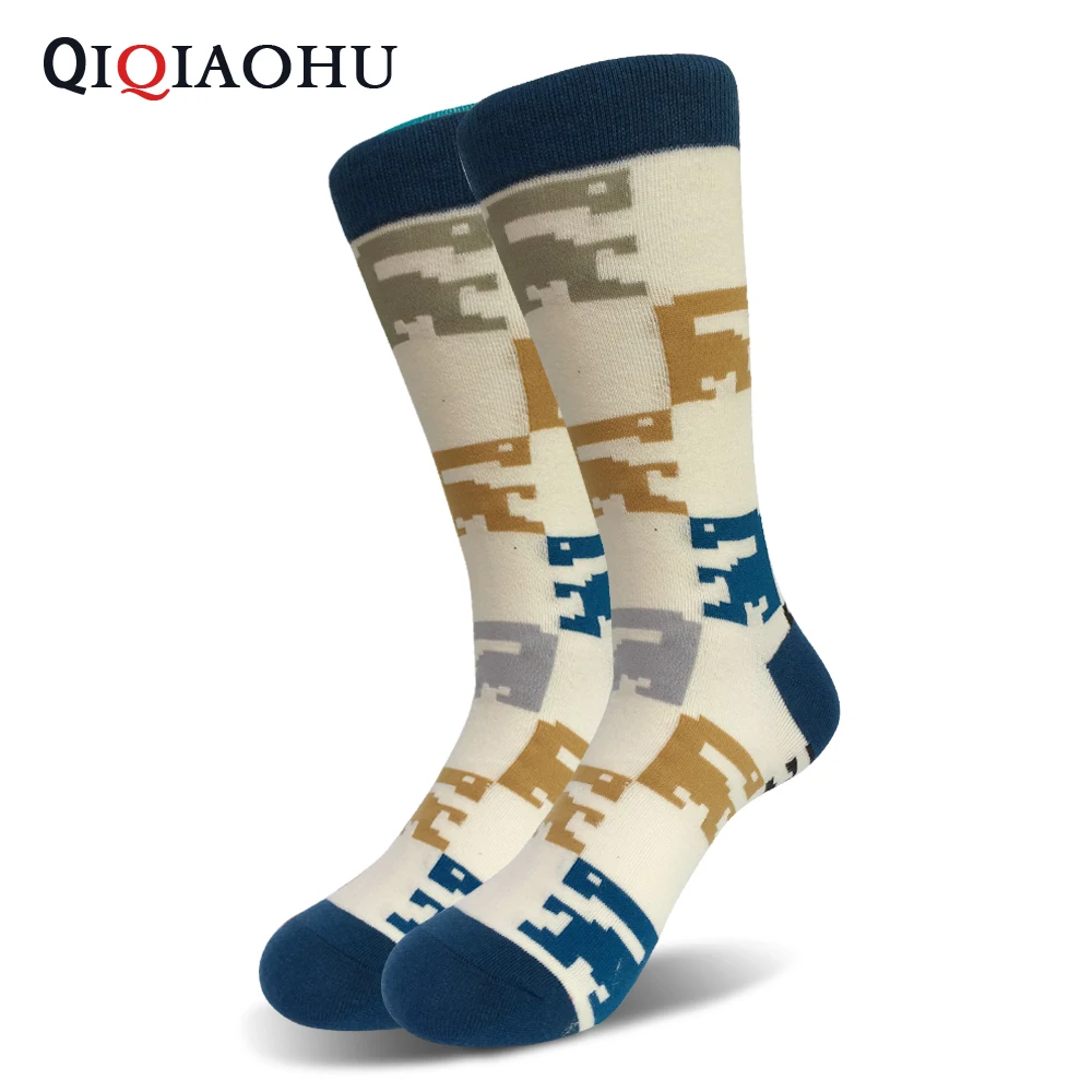 Best Price Qiqiaohu male cotton dress socks long tube wedding gift peacock pattern art socks unisex knee high crew cape socks couple meias