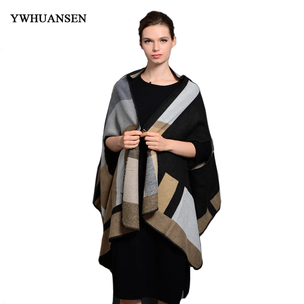 Good YWHUANSEN Brand New Plaid Women Pashmina Warm Scarf Female Winter Multifunctional Scarf For Lady Ponchos et Capes Designer Coat offers