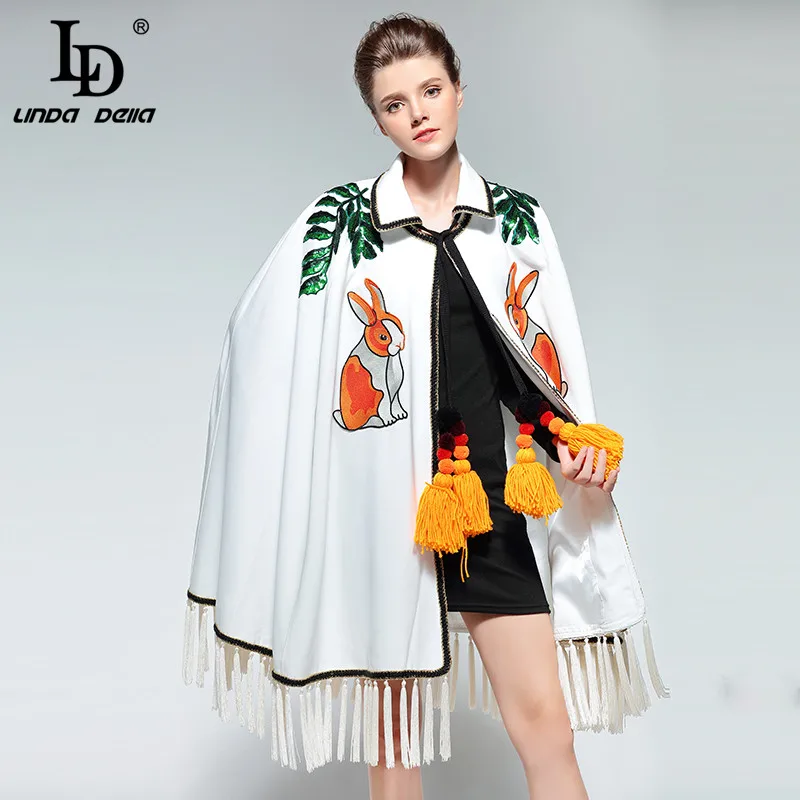 Discount !! High Quality Winter Cloak Coat Women Outerwear Coats Casual White Rabbit Embroidery Sequin Tassel Cape Poncho Overcoat